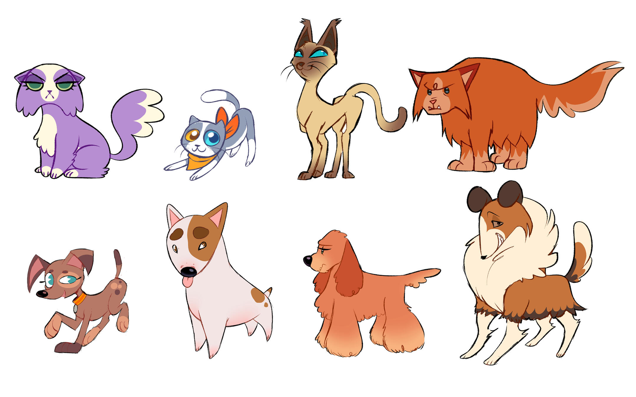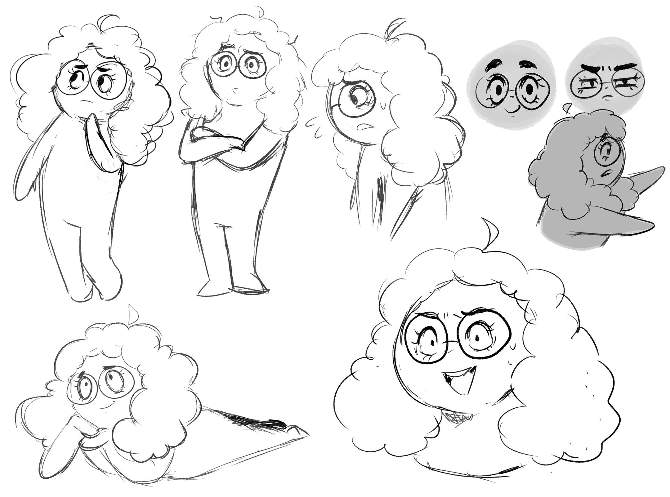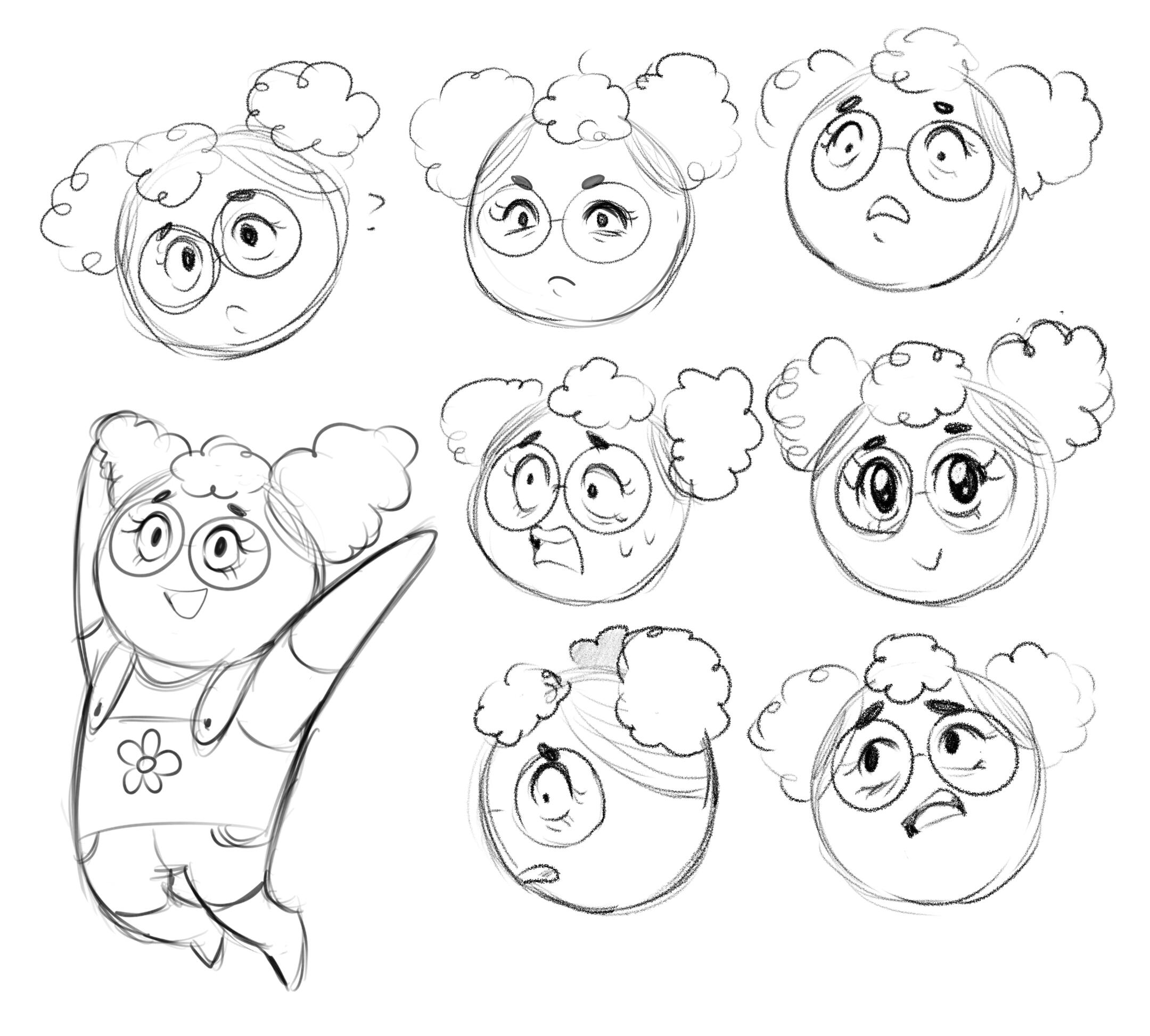 (turn arounds, facial expressions, props, clothing, full reference of a character and creative process of making a character from scratch.)